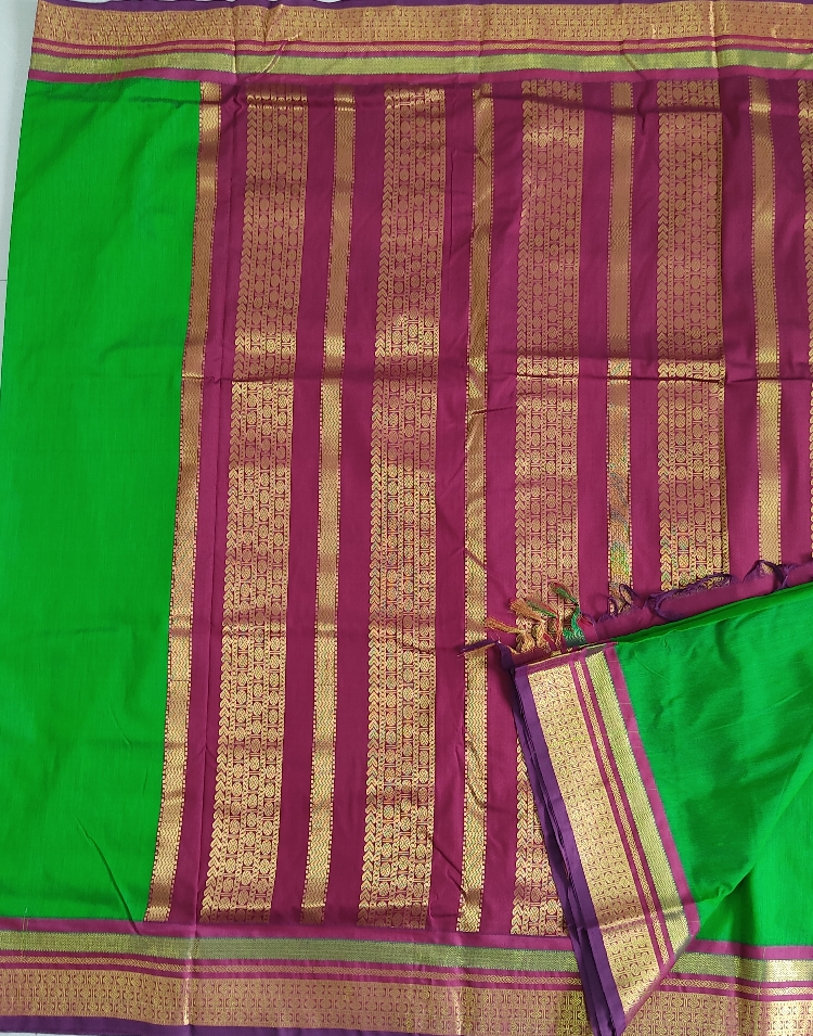 10 yards Madisar saree silkish look grand border total height of the saree is 47. Very tall person and xxl people can wear sufficient saree. For all our traditional functions