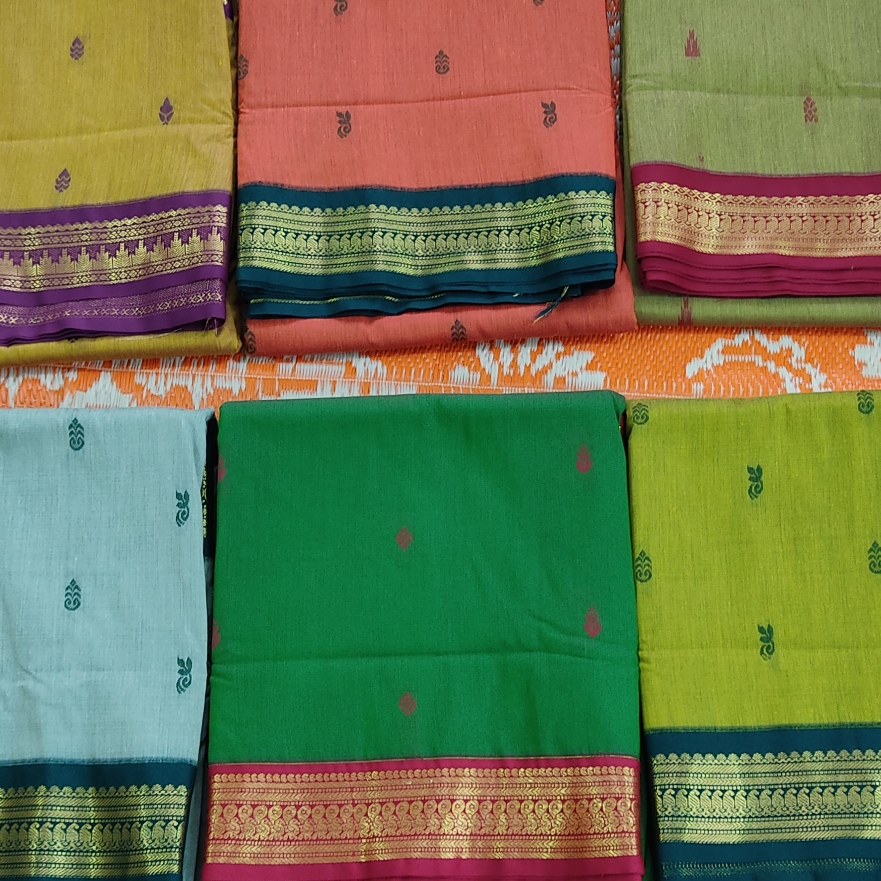 Multiple color sarees with beautiful design in pallu rich pallu and grand look in kalyani cotton saree. Silkish look